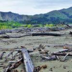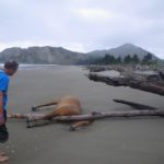 This morning we all went for a walk down the beach to the mouth of the Uawa River, where we discovered a dead horse that had presumably been washed down in a recent flood. It didn’t smell so we figured it hadn’t been there for long. Somehow the horse’s head had become trapped under a huge log, which was rather puzzling because the river wasn’t particularly high.