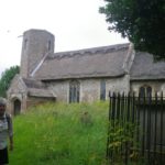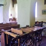 The small, thatched roof church of St Gregory caught our attention, so we stopped to look inside. The oldest parts of the building including the lower round section of the tower date back to Norman times (11th century), but there were significant extensions in the 13th and 14th Century. The wooden wheeled bier used to carry coffins in funeral processions dates from the 19th century.