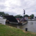 We alternated between sections of narrow country roads, small lanes and a few footpaths until we finally arrived at the Reedham Chain Ferry. The driver controls two winches on either side of the boat to pull the ferry across the river without getting carried downstream by the current. There is enough slack in each chain for it to drop to the bottom of the river when the ferry is docked, allowing boats to pass backwards and forwards. The fare was just NZ 90 cents each because we waited for a car to accompany us.