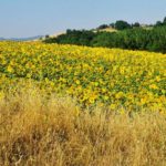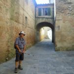 Because our accommodation had been on the outskirts of town, we made a detour past fields of sunflowers to explore Buonconvento before starting our walk this morning. It is only a small town, but its location on the main road between Sienna and Rome which the Romans named Via Cassia, means that it has been around for a while.