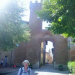 After another couple of kilometers walking past rows of grape vines, we saw a town up on the top of a hill in the distance, and realised that was where we were heading. The last kilometer or so trudging 300 meters (in height) up a steep hill in the afternoon sun was a serious mission, and we were relieved to find our hotel was just inside the Porta Burelli gate.
