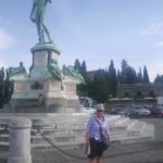 This involved climbing up a steep hill, and lots of steps, but when we reached the Piazzale Michelangelo we were rewarded with fantastic views over the city. In the centre of the piazza is a bronze copy of Michelangelo’s famous statue David. By now we were both hot and thirsty, so at the bottom of the hill we stopped at a cafe for two coffees each as well as water.