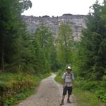 The first two hours was an unrelenting climb, first up a steep forestry road, then from the settlement of Les Oeuillons up a narrow track. One of the interesting things about Swiss hikes is that there are tiny villages everywhere, often with restaurants and accommodation. We were in thick forest all the way up, so didn’t get much of a view, but when we finally emerged from the trees at Creux du Van we got our reward.