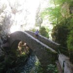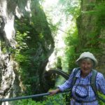 We were fortunate to have picked the most scenic section. The gorge is very narrow for a couple of kilometers, and the track crosses from side to side on narrow bridges. One part is cut into solid rock, so it had a rock overhang above our heads. There were even more people on this trail, including some small children in backpacks.