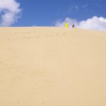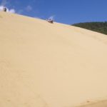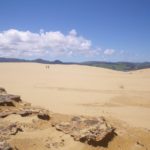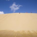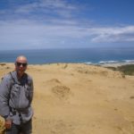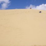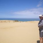 The top is an unusual spot, blasted by the prevailing winds, and with deeply eroded gullies formed by the high rainfall in this area. There were spots where the sand was almost turned to stone, although we could still break it apart with our hands. At the highest point we found what looked like fossilised branches and tree stumps, but subsequent Google searches informed us this is Fulgurite, caused by lightning striking silica-rich sand. The temperature can be up to 30,000 degrees, so you don’t want to be on the top of a dune in a thunderstorm!