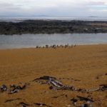 When we looked at the weather map in Queenstown, we figured that the least wet place was likely to be the east coast, so we decided to head for Curio Bay. When we reached the sea at Fortrose however, and saw a line of campervans on the edge of an attractive estuary, we changed our minds and stopped there for the night instead.