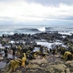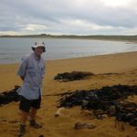As we walked along the beach below the lighthouse, we came across a sea-lion resting on the sand. It didn’t seem too bothered by the stream of tourists, although they can be dangerous if frightened. As the tide was out, we walked out on to the rocks to look at the huge bull kelp washing in the surf. Not far from the coast we could see Ruapuke Island, with Rakiura / Stewart Island on the horizon.