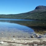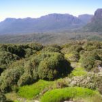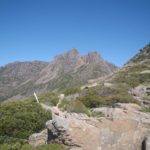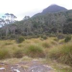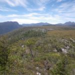 On the third day, there was an optional side trip to the top of Mount Ossa, which at 1,617 metres is the highest peak in Tasmania. As the last few hundred metres is gained by scrabbling over broken rock, this requires good weather, as it would be deadly in a high wind. We had an almost perfect clear sky, with most of the haze on the horizon caused by the wildfires which are ravaging the state.