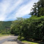 We spent most of the first day taking trains and buses to the start of the trail in Takijiri. From there we walked nearly 5 km to the Organic Hotel Takahara which took us a couple of hours. When we arrived, we went to gender-separated baths where we sat on a small stool outside the bath and washed before soaking in 40° hot water. Afterwards we both put on a hotel-supplied Yukata robe, and wore that for the remainder of the evening. This was to be the pattern for the rest of our stay in Japan.
