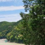 During our “rest day” at Yunomini we visited another onsen (hot spring) village where there are natural springs on the river bank. The pool was a bit flooded, so mostly cold water, but it was a hot day and we enjoyed it anyway. While I was waiting for Felicity to get changed I saw a small snake which was exciting.