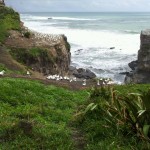 A brief shower of rain encouraged us to turn back, but by the end of the beach it seemed sunny again, so we climbed the steps to see the gannets. A much heavier shower saw most of the group heading for home, but I stayed for a while with Murray watching the birds.